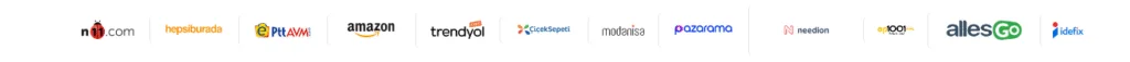 N11 entegrasyonu, Trendyol entegrasyonu, Hepsiburada entegrasyonu, Amazon entegrasyonu, Epttavm entegrasyonu, Çiçeksepeti entegrasyonu, Allesgo.com entegrasyonu, Modanisa entegrasyonu, Pazarama entegrasyonu, Akakçe XML entegrasyonu, Cimri XML entegrasyonu, Goturk entegrasyonu, Reistrend entegrasyonu ve İdefix entegrasyonu.
